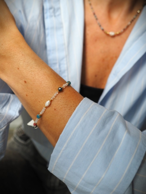 Bransoletka MOC to wyjątkowe połączenie piękna i mocy, której nie można przeoczyć. Każdy element został starannie dobrany, aby stworzyć luksusowy dodatek idealny na wieczorne wyjścia czy eleganckie spotkania biznesowe. Wykonana z białego topazu, apatytu, rodonitu, hematytu oraz perły ta bransoletka emanuje klasyką i finezją.