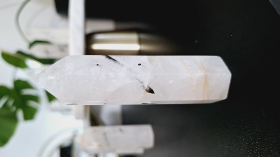W jego wnętrzu zatopione są naturalne pręty Czarnego Turmalinu – kamienia potężnej ochrony i uziemienia. To właśnie one tworzą unikalny, niemal „magnetyczny” krajobraz wewnątrz wieży. Turmalin działa jak tarcza: pochłania niechciane energie, odcina wpływy z zewnątrz, chroni przed chaosem, stresem i emocjami innych ludzi.